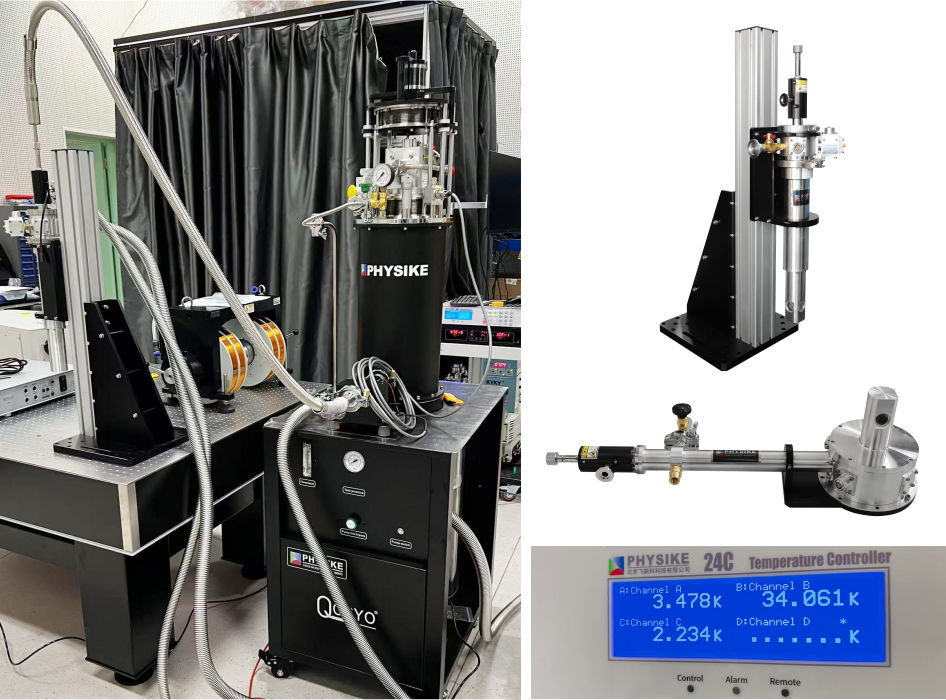 最近在華東某高校成功安裝一套低振動干式低溫系統(tǒng)。該低溫系統(tǒng)采用分體式設(shè)計,由氦氣循環(huán)低溫系統(tǒng)(Qcryo?)和兩種低溫恒溫器(Scryo-S-100 和Scryo-S-500 )形成低振動閉環(huán)低溫系統(tǒng),無需消耗液氦即可獲得<2.3K的低溫。