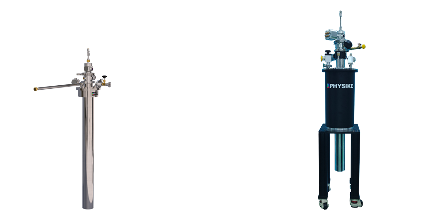 The Scryo-SV (abbreviated as SV) is a top loading continuous flow cryostat that utilizes a transfer piping with a needle valve to efficiently transfer liquid helium from the storage dewars into a vaporizer. The vaporized cold helium flows into the sample tube to cool the sample, which allows for adequate cooling of poorly thermally conductive samples (e.g., stainless steel, ceramics), irregularly shaped samples (e.g., DAC press), powdered samples, and liquids, with the option of a Static helium environment. Typical SV cryostat variable temperature range:<2K-325K, with optional 500K and 800K high temperature upper limits.