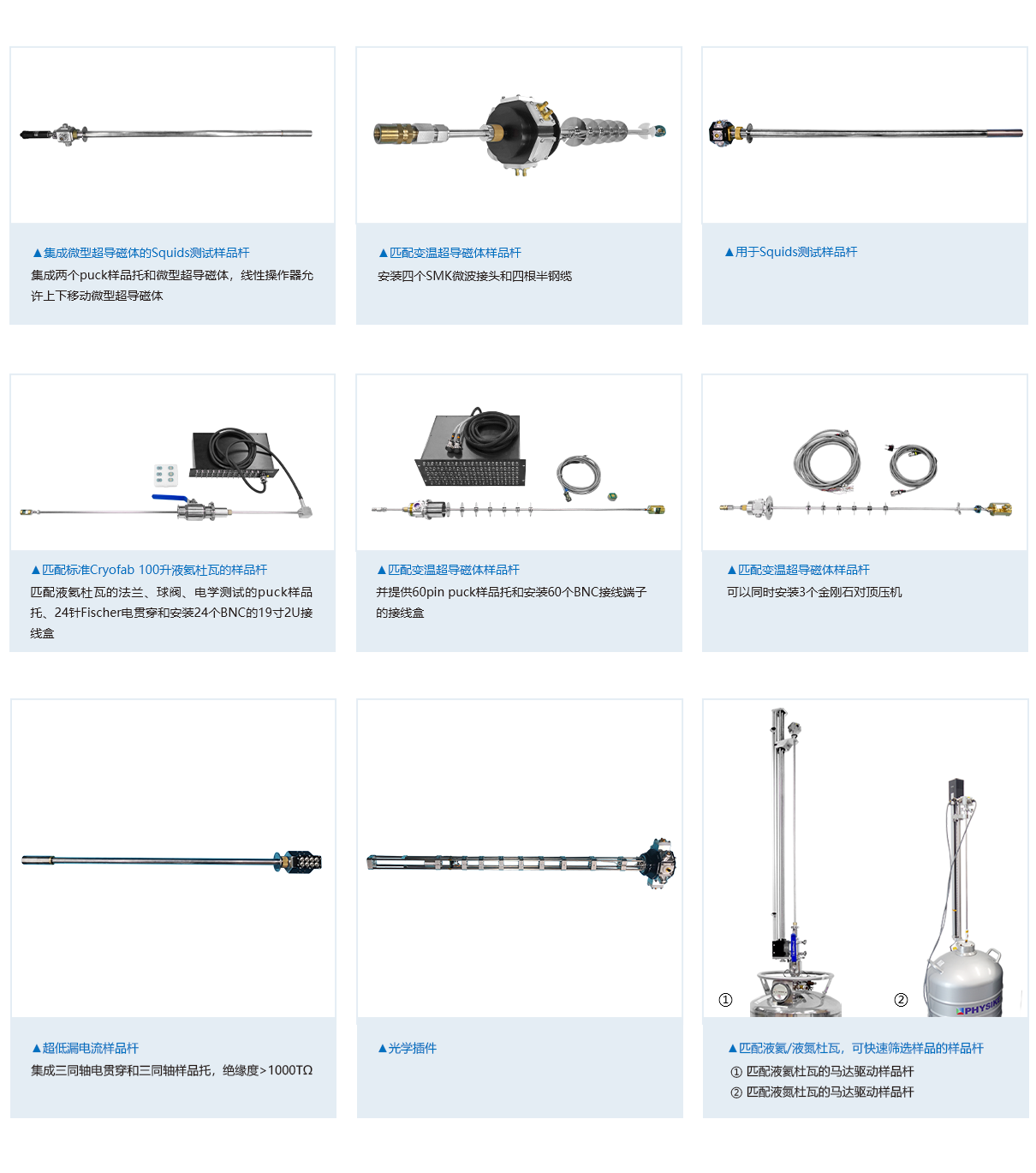 匹配液氦 / 液氮杜瓦測試桿、Squids器件測試桿等,并可根據(jù)要求進(jìn)行定制。
